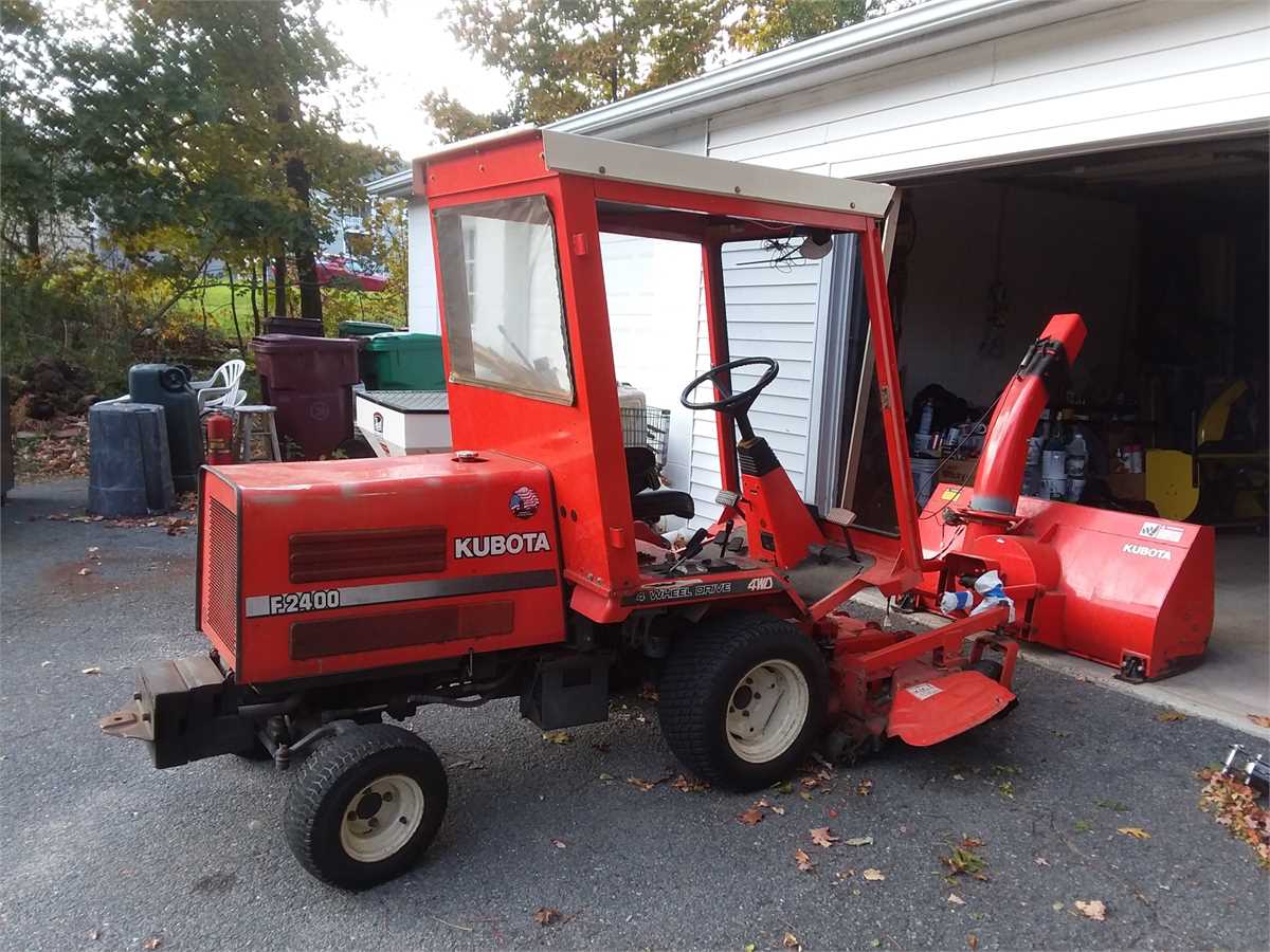 Kubota Model F2400-1 Tractor with 60" Mower, Cab & 52" Two-Stage Snow Blower, 4 Wheel Drive, 24 HP Diesel Engine with approximately 1550 hours on it. Everything is in working order.