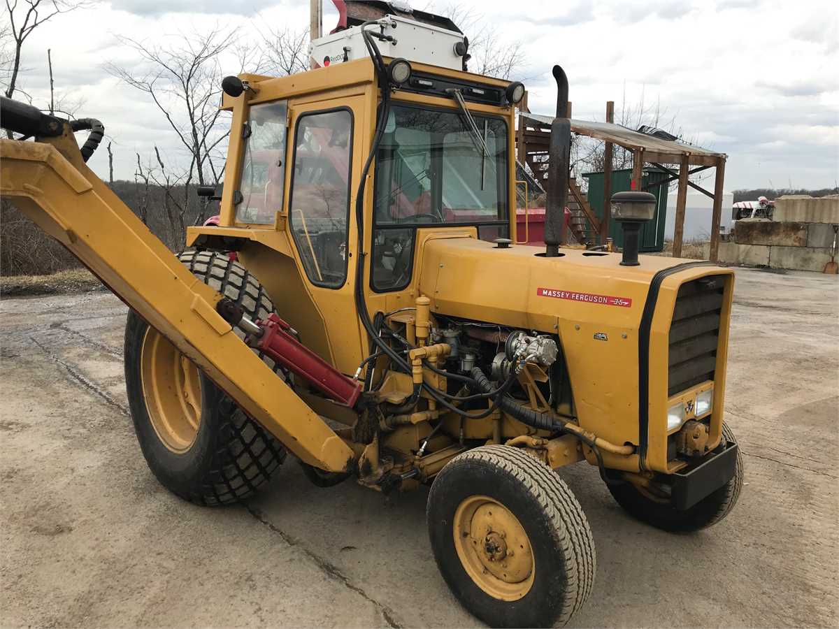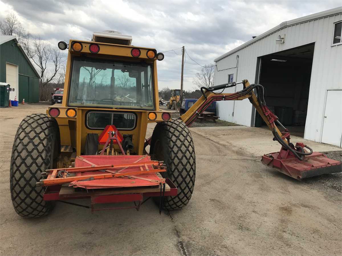 Massey Ferguson Tractor with Tiger Boom Mower. Hour meter currently shows approximately 3200 hours. Newer tires. Air conditioning. Unit runs and functions as it should. Rear 3 point platform attachment and signage not included.