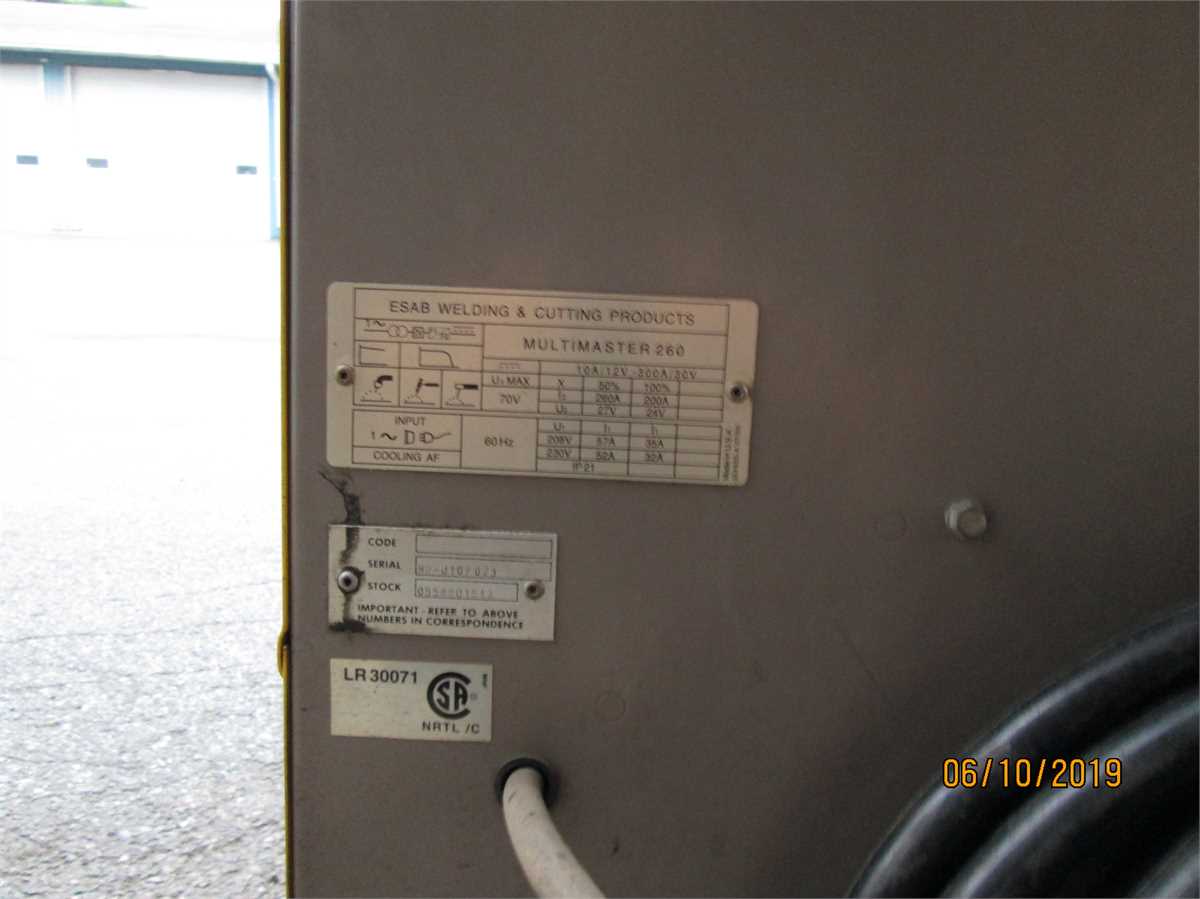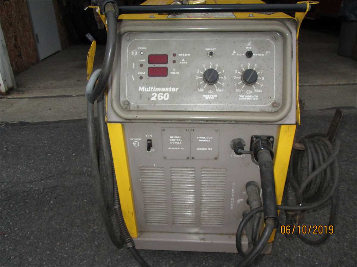 ESAB Multimaster 260 welder included are mig and stick attachments. This welder was working when replaced 5-2019. This unit is sold AS-IS condition with no warranties expressed or implied.