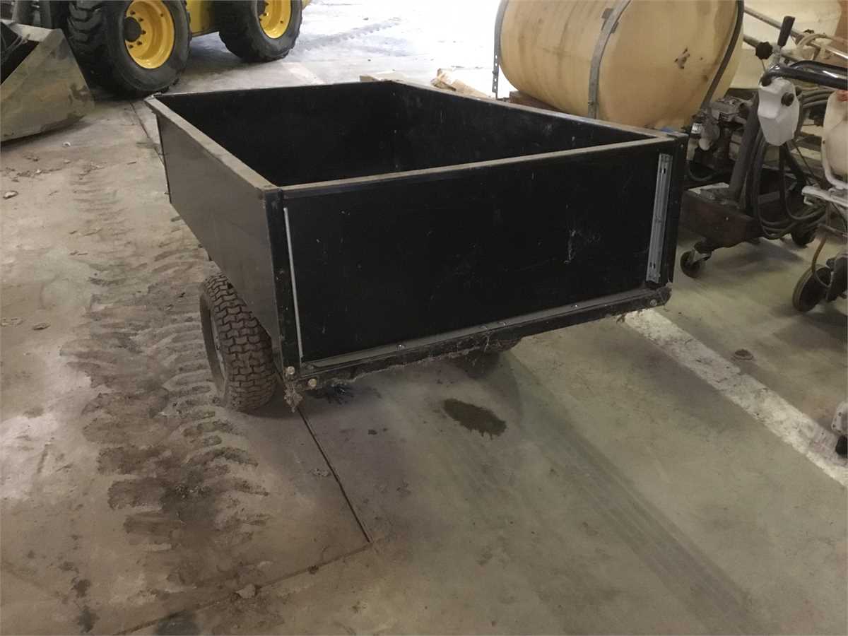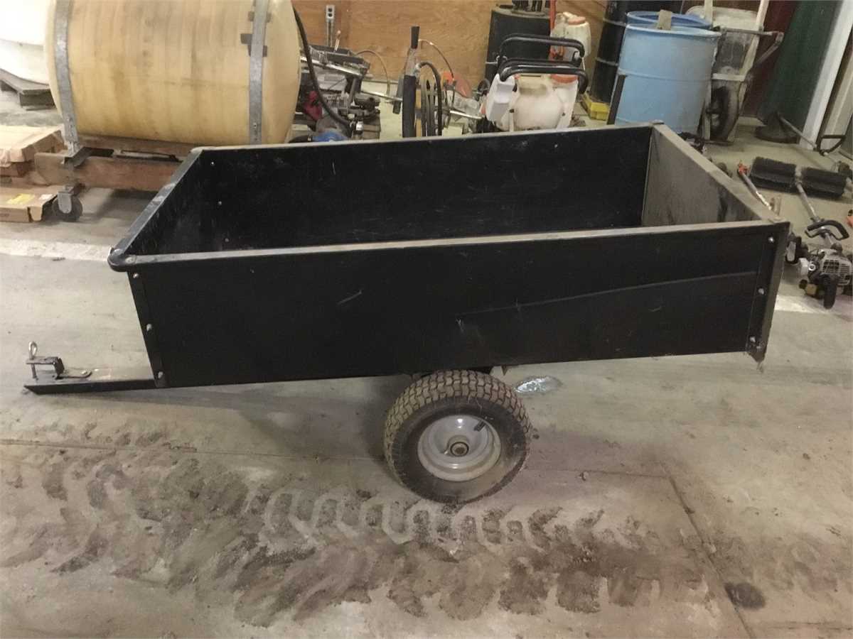 Black dump trailer. Was purchased for one project 10 years ago used once and stored away. May need flat tires repaired. You can still read the white lettering from the store on the trailer in the photos.