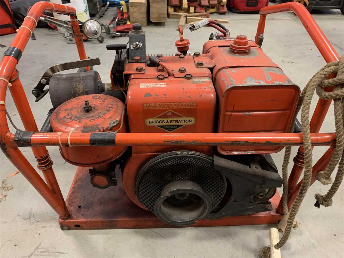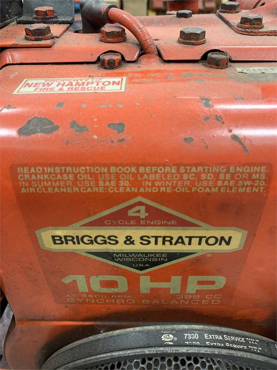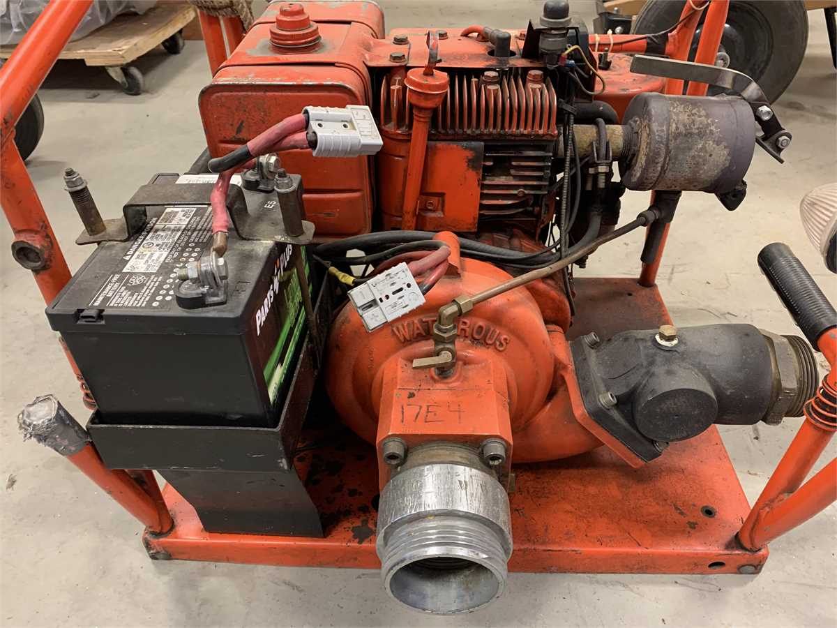 Capacity to 380 GPM. Pressure to 75 PSI. 3" suction inlet, 2 1/2" outlet. Unleaded fuel. Pull-starts easy. Battery for push button start. Engine exhaust priming system.