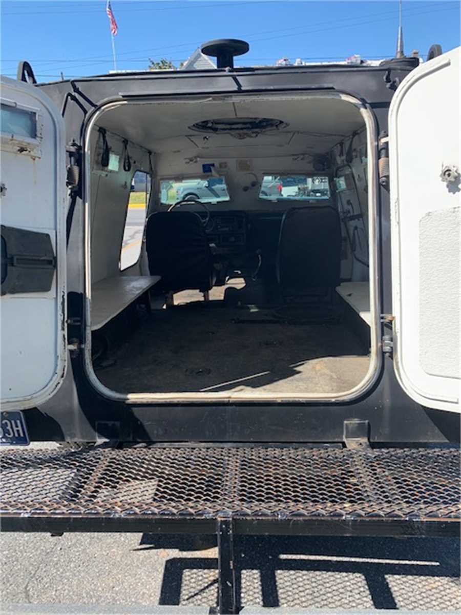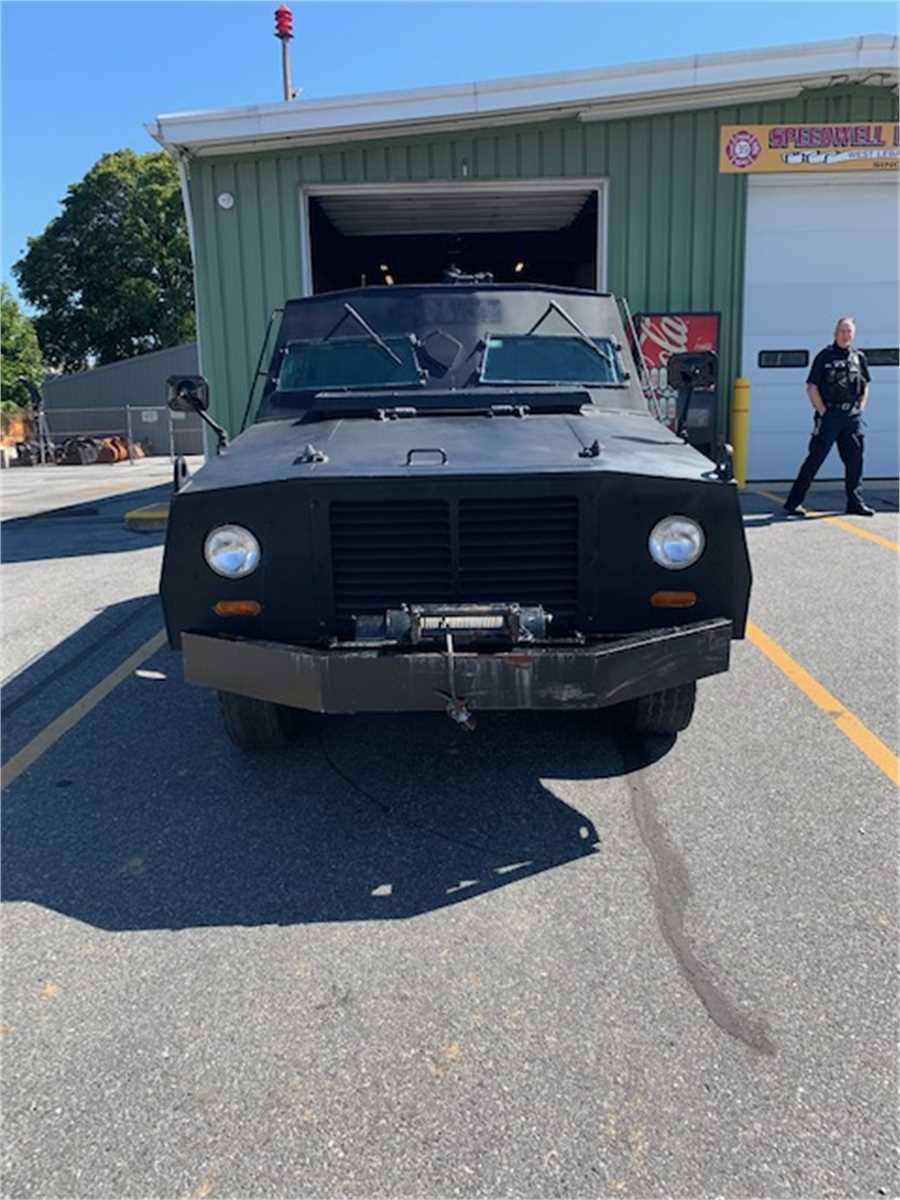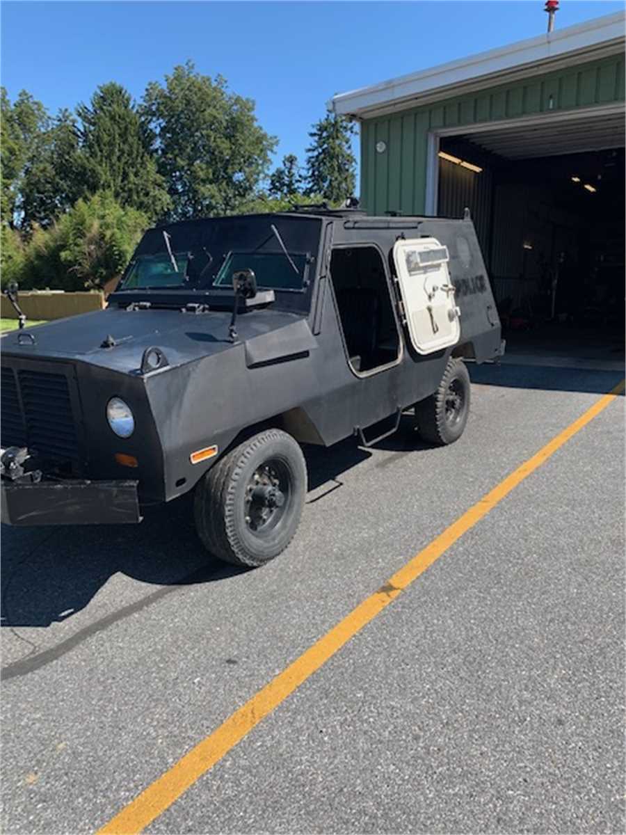 Lebanon County Emergency Services Unit is selling one black in color 1982 Peace-Keeper armored vehicle on a Dodge Chassis. 360 V8 motor with automatic transmission, 4x4. 23,408 miles that are known. It has no inspection and no air conditioning., It has a turret with a folding step, two rear bench seats and a rear deployment platform with rear grab rails. The vehicle currently runs and is drivable. VIN: 1B6WW34T7CS259113.