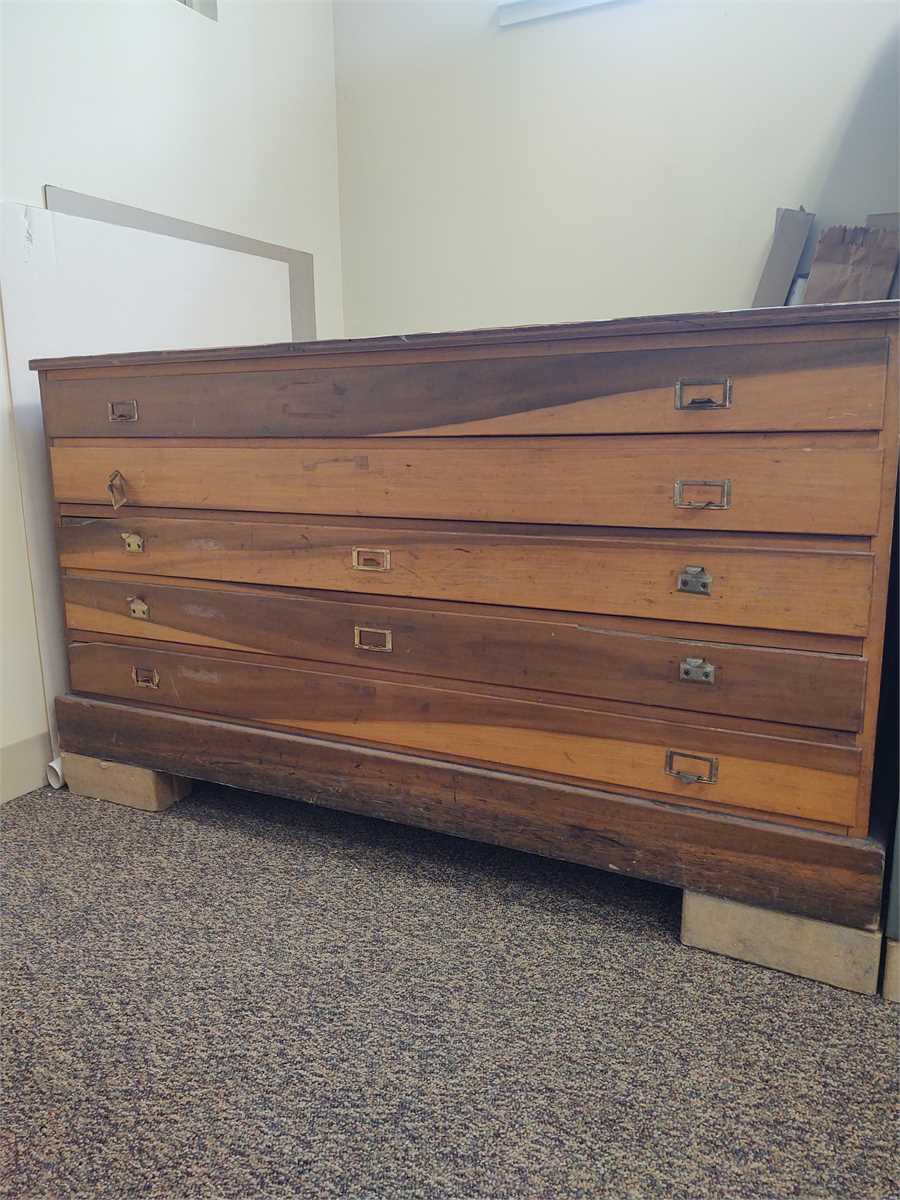 Wooden Map Cabinet, being sold as is. Has a lot of life left to the cabinet. Sturdy cabinet with larger drawers.