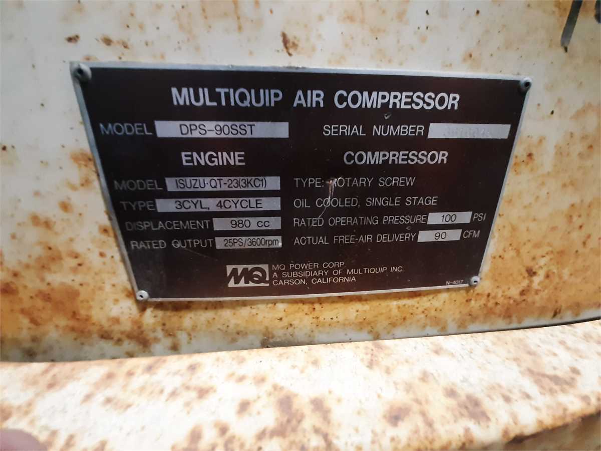 For sale is a 1990 Multiquip MQ90 air compressor
