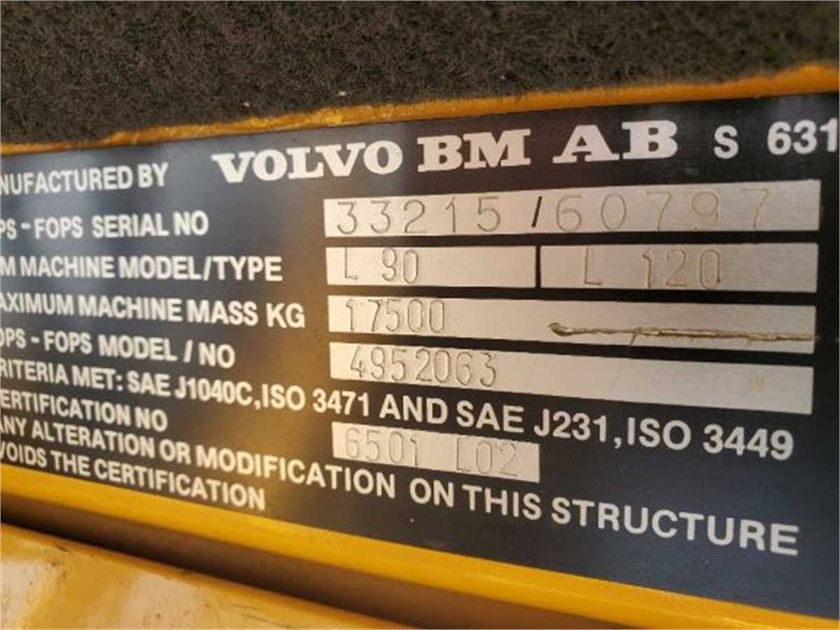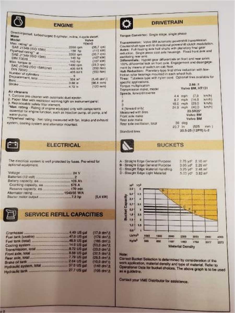 Volvo L90 Loader S/N L090V-60490ASH with 7382 hours. Engine Output 145HP. Operation Weight 28540. Four Michelin Sno plus radial tires with 90% tread. New Rear Brake Pads and rebuilt calipers. New Rear Parking Brake Pads. No abnormal engine noise, no negative exhaust smoke, and no excessive wear in loader linkage for age & hours. The following are seeping not leaking, bucket cylinders, loader arm cylinders, and steering cyclinders. Coupler locking pins seized (were working in 2018). This item to be sold "AS IS"