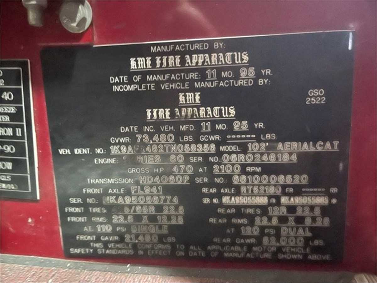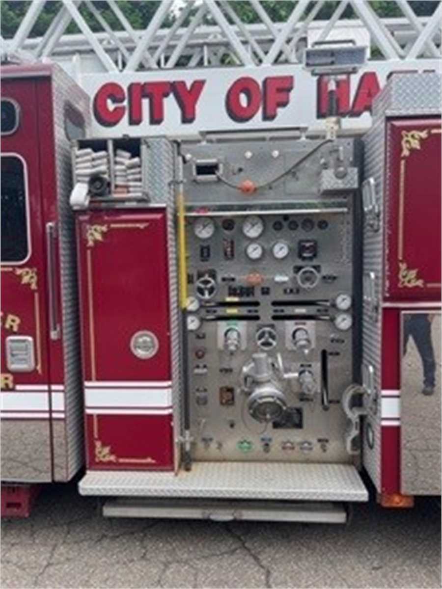 The City of Hazleton is accepting bids for a 1995 KME Renegade Ladder Tower. 102' Ladder Tower, 3 section, 1000 lb tip load, Seating for 7 firefighters in cab, 6 seats with SCBA holders. Series 60, 470HP Detroit Engine – 20549 Miles, 5299 Engine Hours, 904 Aerial Hours, Allison HD4060P transmission. Hale 1250GPM, QG125-21 Two Stage fire pump. 150-gallon Poly Water Tank. 2 cross lays, Prepiped Water Way to bucket with One Akron Monitor, Standpipe Connections in Bucket. Prepiped Breathing Air to Bucket. Air pack cylinders holders over wheel wells. LED Warning & Scene Lights. On board 20KW diesel Onan generator.2 – 200ft Chord Reels with Junction Boxes, Federal Q Siren and Electric Siren. 6000PSI, 6 Cylinder Cascade System. Ground Ladders. Truck comes with no equipment other than listed. The Ceremonial Bell on the Apparatus will be removed prior to approved sale. Aerial & Ground Ladders Certified 2021. Fire Pump Certified in 2021. Vehicle Inspection good through June 2022.
