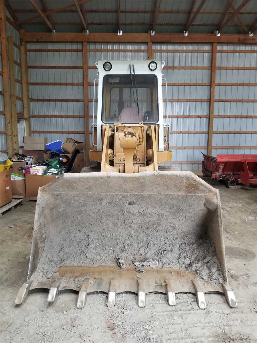 A full ROPS enclosed cab, joy stick (single lever) to control forward, reverse and turning. A 1 3/4 yard bucket.