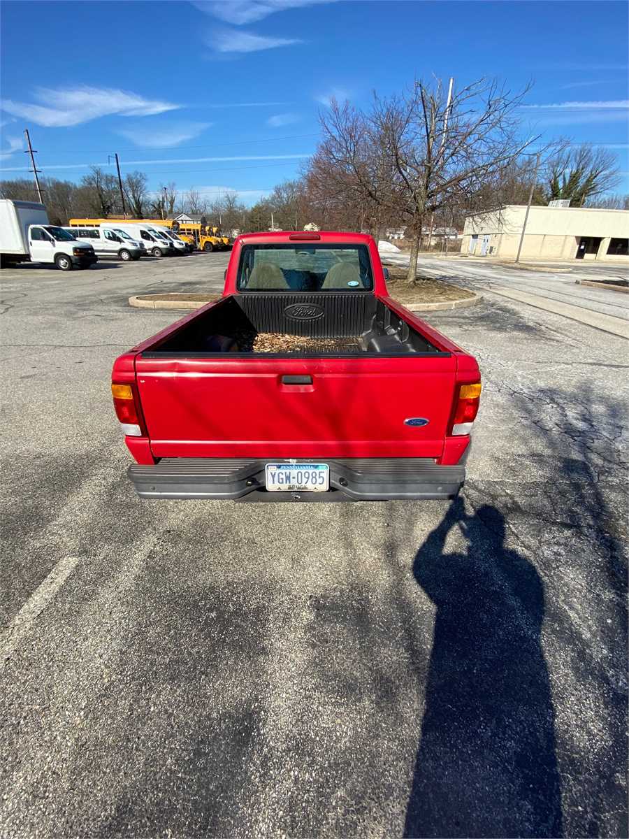 Delaware County Intermediate Unit is selling a 1999 Red Ford Ranger Pickup, vehicle has 99,880 miles, 2.5L engine, auto transmission air conditioning. Body damage driver side. Vehicle runs but needs to be jump started.