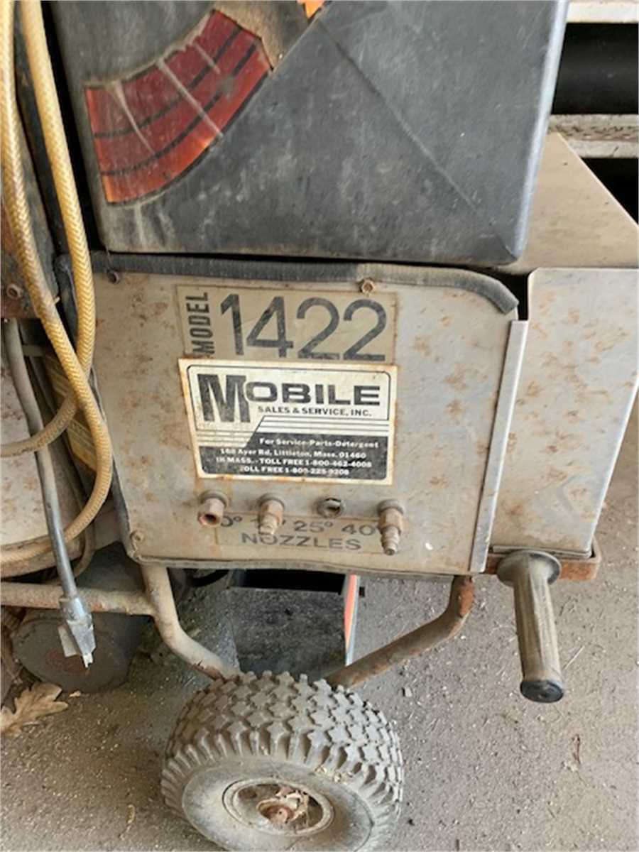 110 volt electric washer with a diesel burner. The front legs are rusted away but it does work