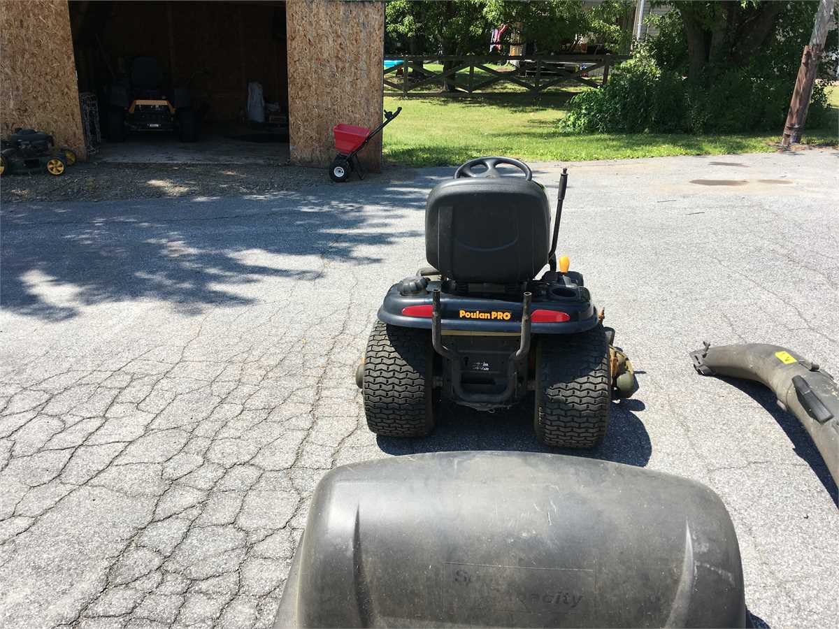 The year of this mower is unknown, roughly 15 years old. 48" cut, Briggs & Stratton engine, showing 423 hours, includes bagger. The only reason we are selling this mower is because our Township purchased a zero turn mower.