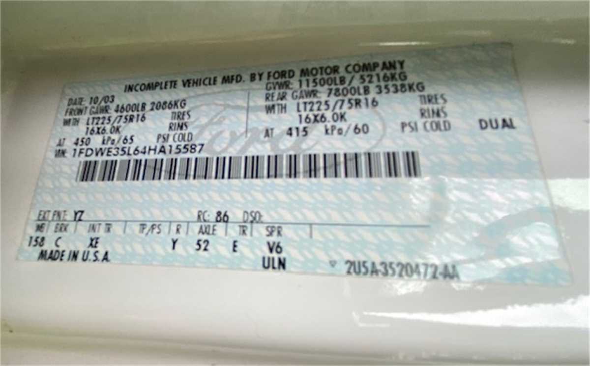 | VIN | 1FDWE35L64HA15587 | |