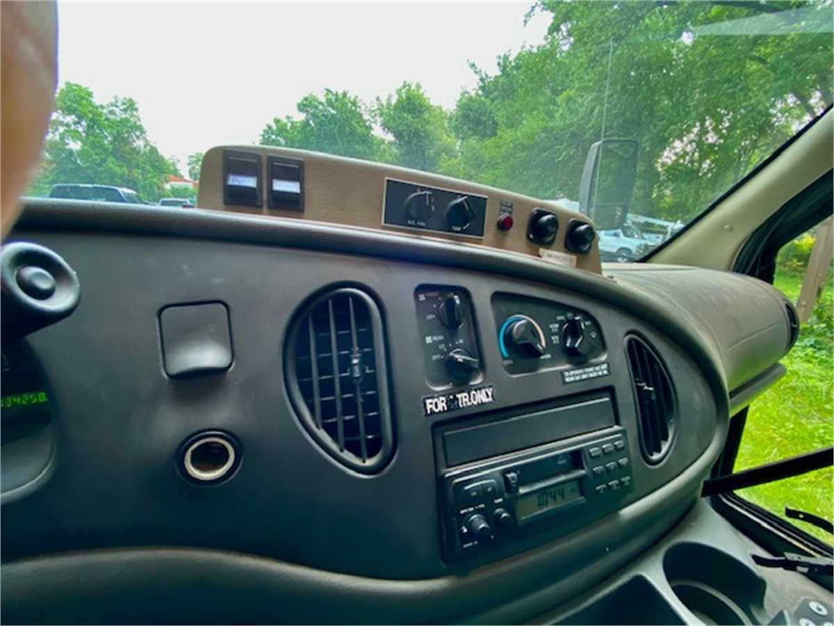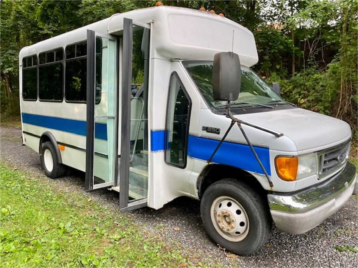 Listed is a 2004 Ford Omni-Bus 14 Passenger plus Driver, 2 Wheel Drive, Automatic transmission, Air Conditioning, 5.4 Litre V-8, gasoline engine, AM/FM/Cassette Stereo, Rooftop A/C unit. The vehicle runs and drives, will need some body work repairs. GVWR: 11,500 lbs.