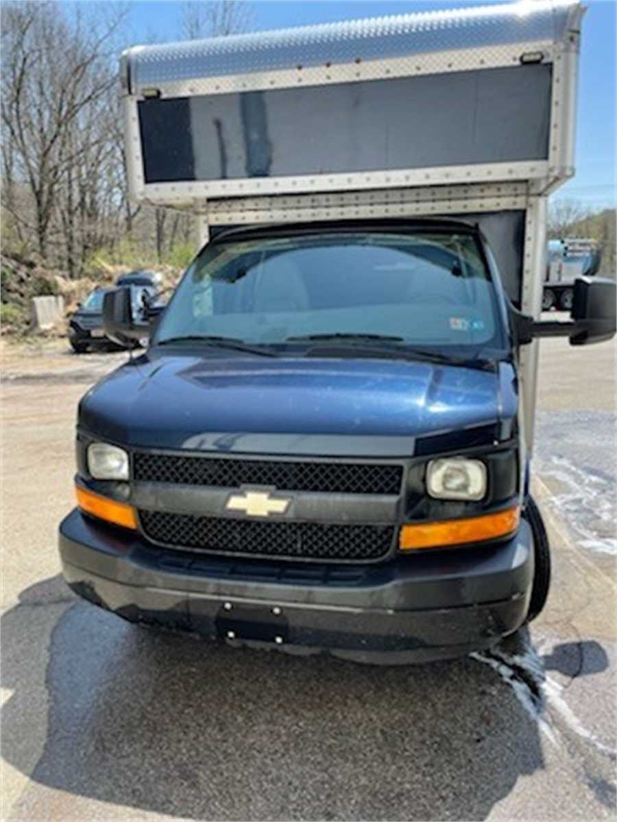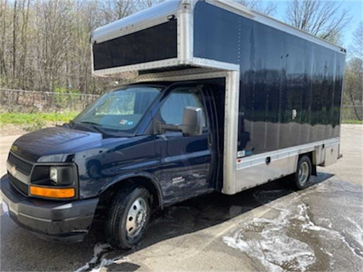 For auction is one (1) 2011 4500 Chevy Express van. The vehicle has a 6.6 liter Duramax Diesel engine, a 14 foot insulated box with attic, heat and air conditioning. Also includes an inverter with battery, water tank and pump, tool boxes, new front tires and good rear tires, new rear brakes and caliper, and a new fuel tank. The vehicle has 85651 miles, is inspected and is in good running condition. Vehicle is sold ‘as is’ and must be picked up at our location by the buyer or the buyer’s agent.