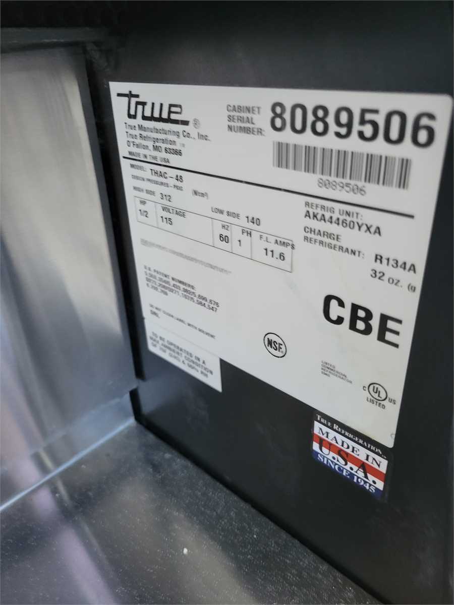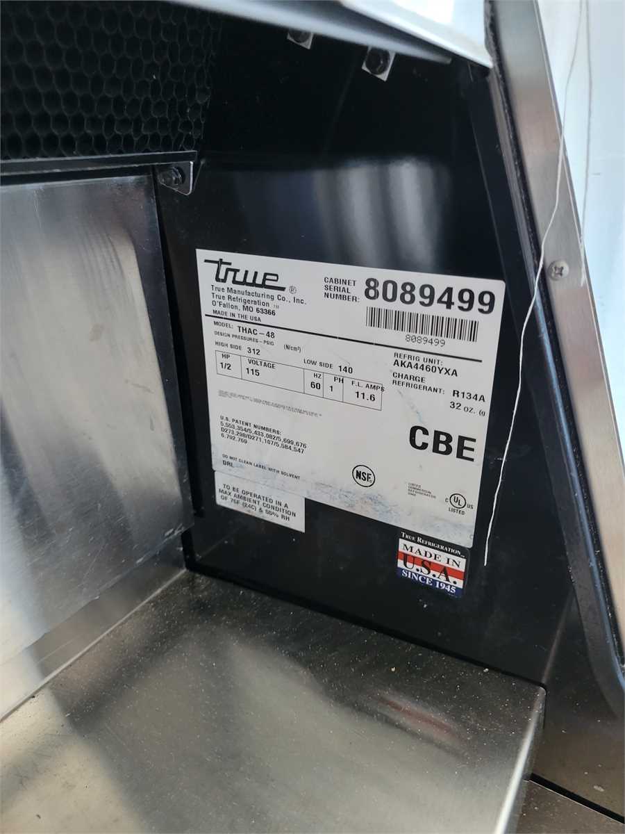 2 -True horizontal air curtain food service merchandisers, worked when removed from service in approximately January of 2022. Model # THAC-48. Sold as is, where is, with no warranties expressed or implied, pickup only. Sold as a pair.