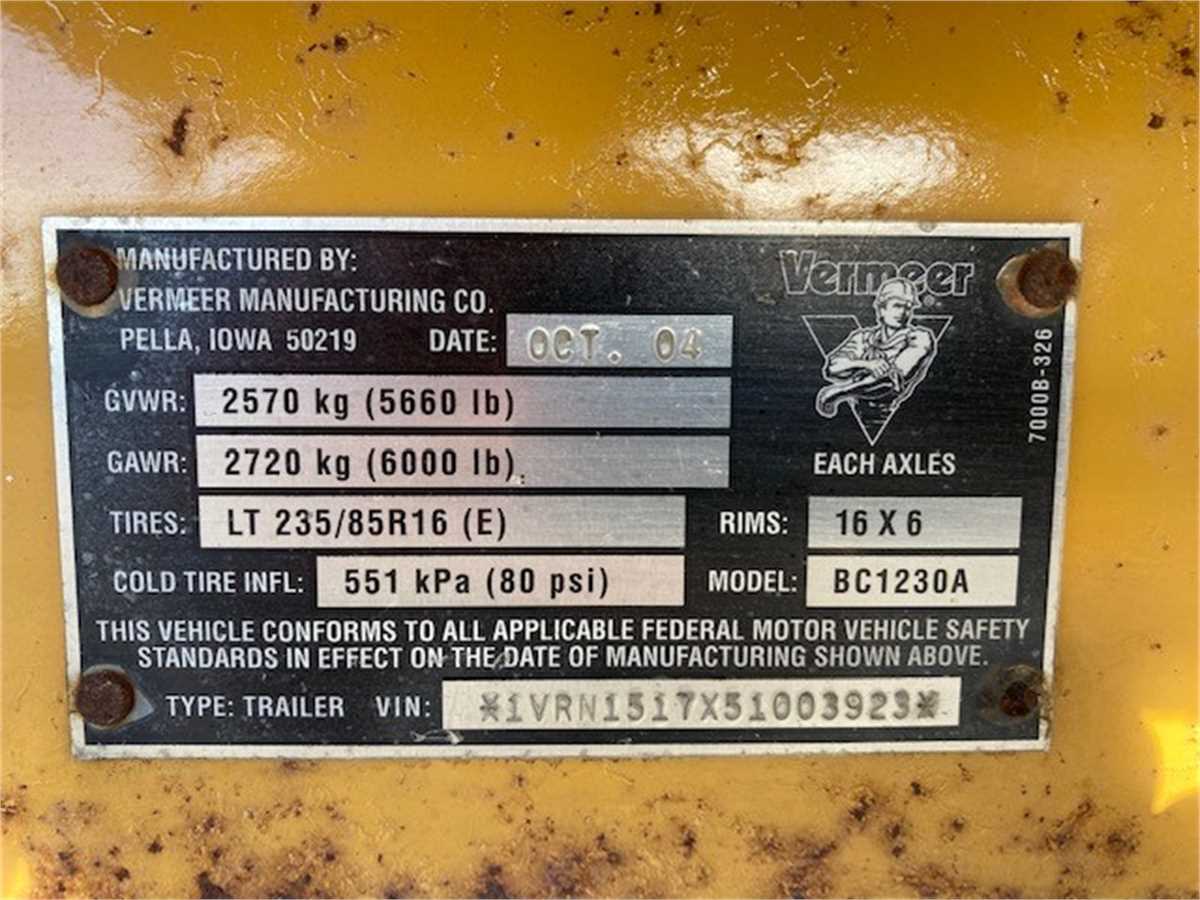 2004 Vermeer BC1230A diesel wood chipper in good condition. The clutch was replaced in September 2021 by Vermeer in New Jersey, and the most recent PM service was in December 2021. The tachometer and hour meter stopped working last month, estimated hours are under 1,800. Perkins diesel engine. THIS ITEM IS BEING SOLD AS IS, WHERE IS.