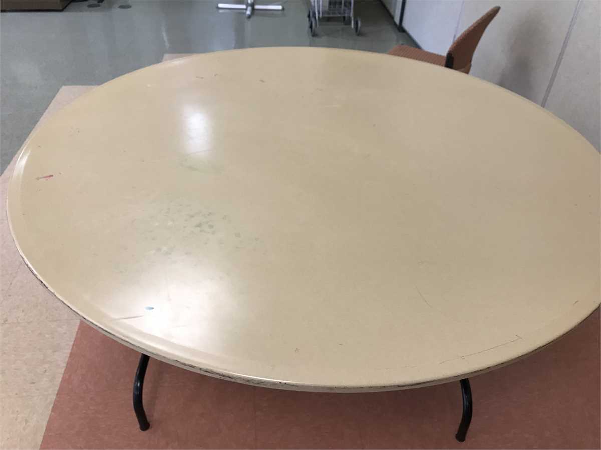 19 Stackable 60" Round Mity-Lite Tables for sale. Tables have some scarring on sides and top. Tables are sold as a lot but seller would consider selling a smaller quantity at interested parties request. Tables must be paid for and picked up by October 5, 2022. Pickup must be scheduled Monday through Thursday between 8:00 AM and 2:0o PM and between 8:00 AM and 11:00 AM on Friday.