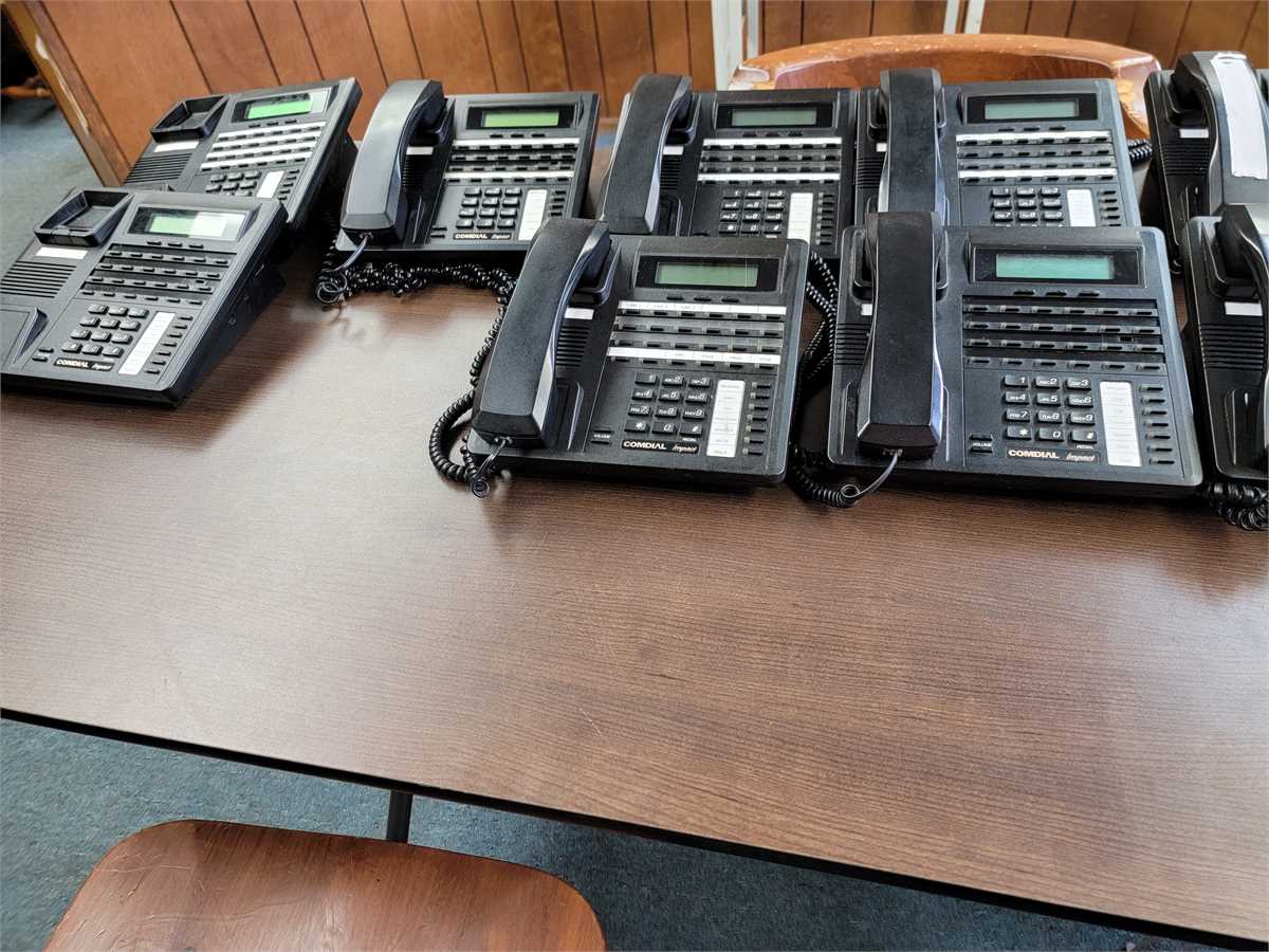 14 phones total.  Several phones working when disconneted, 2 others with no handset and unkown condition.  Being sold AS-IS.