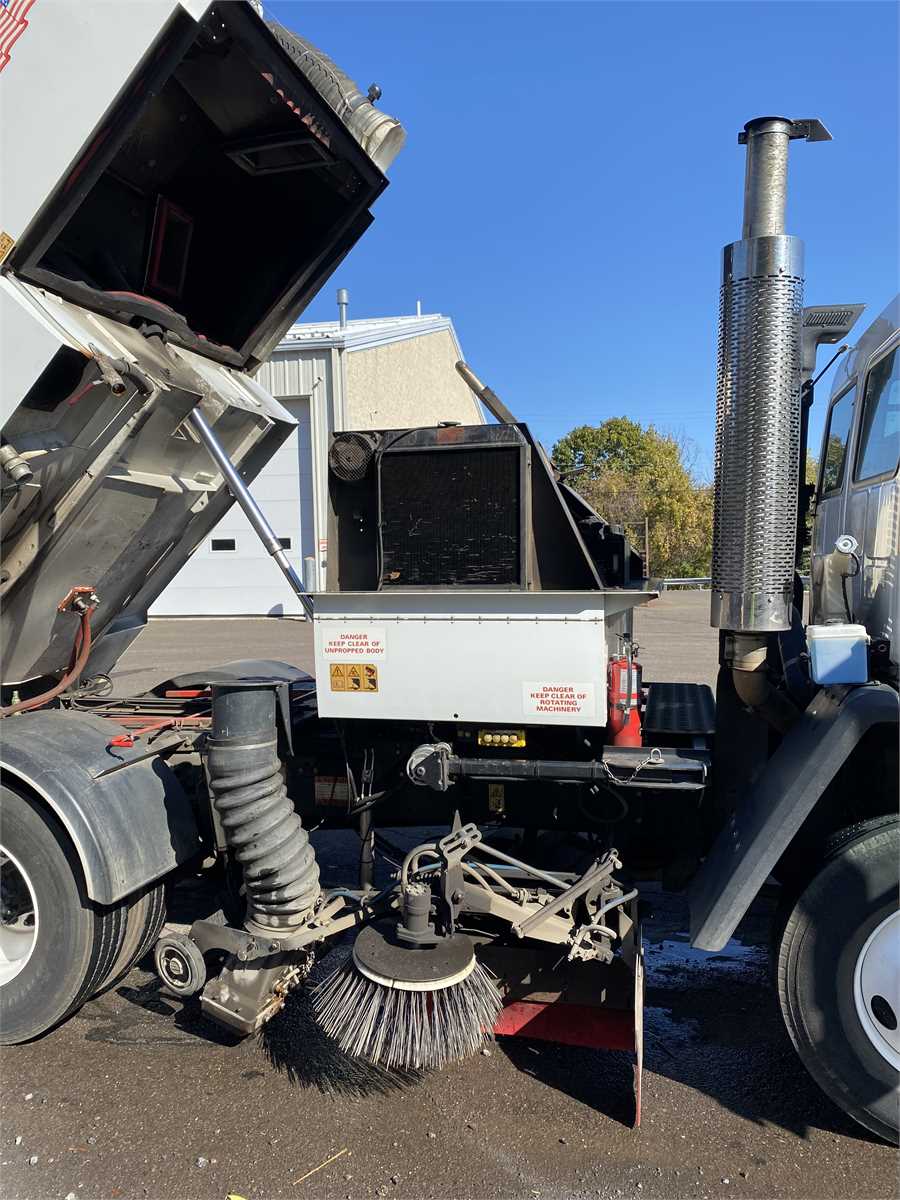 605 Series Vacuum Sweeper: Single gutter broom, catch basin cleaner, PTO hopper dump, 1004-40T 108 HP Perkins engine.