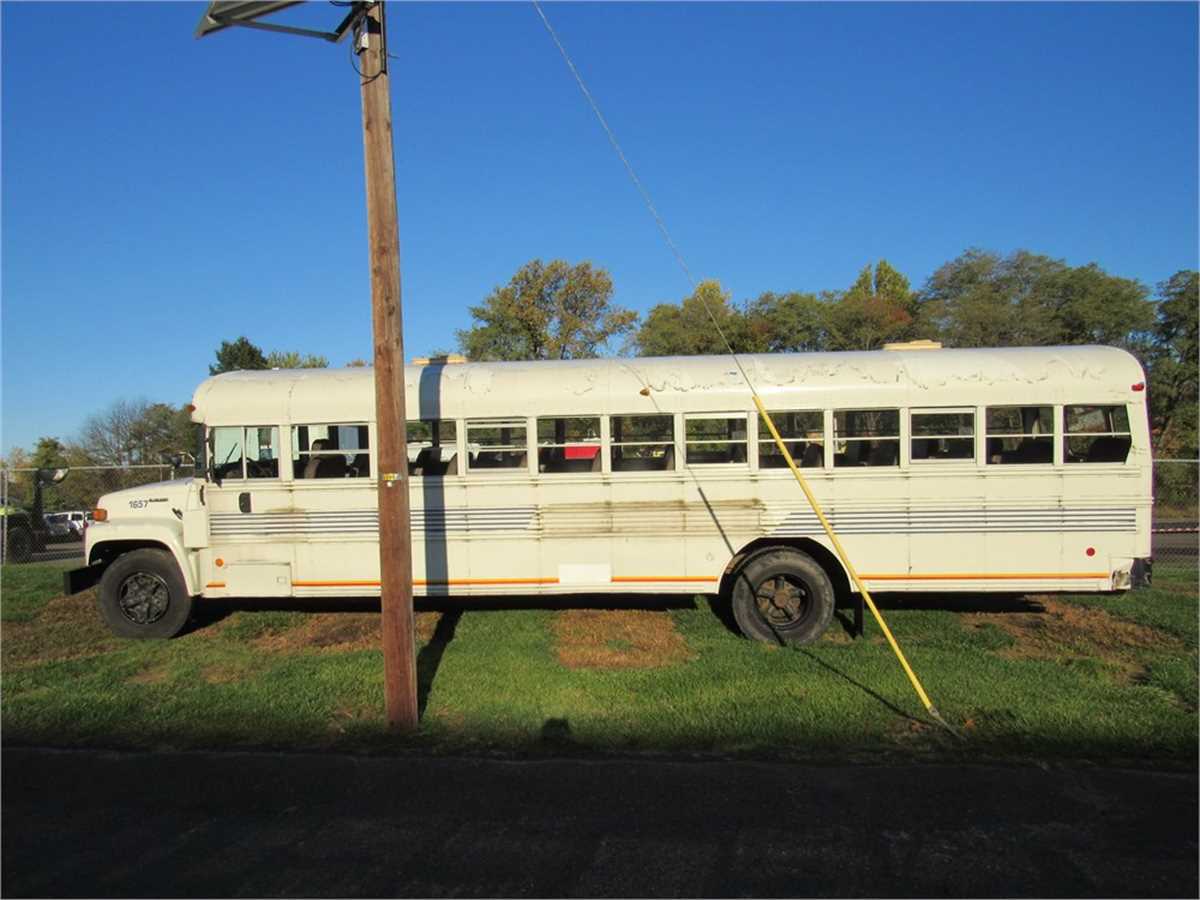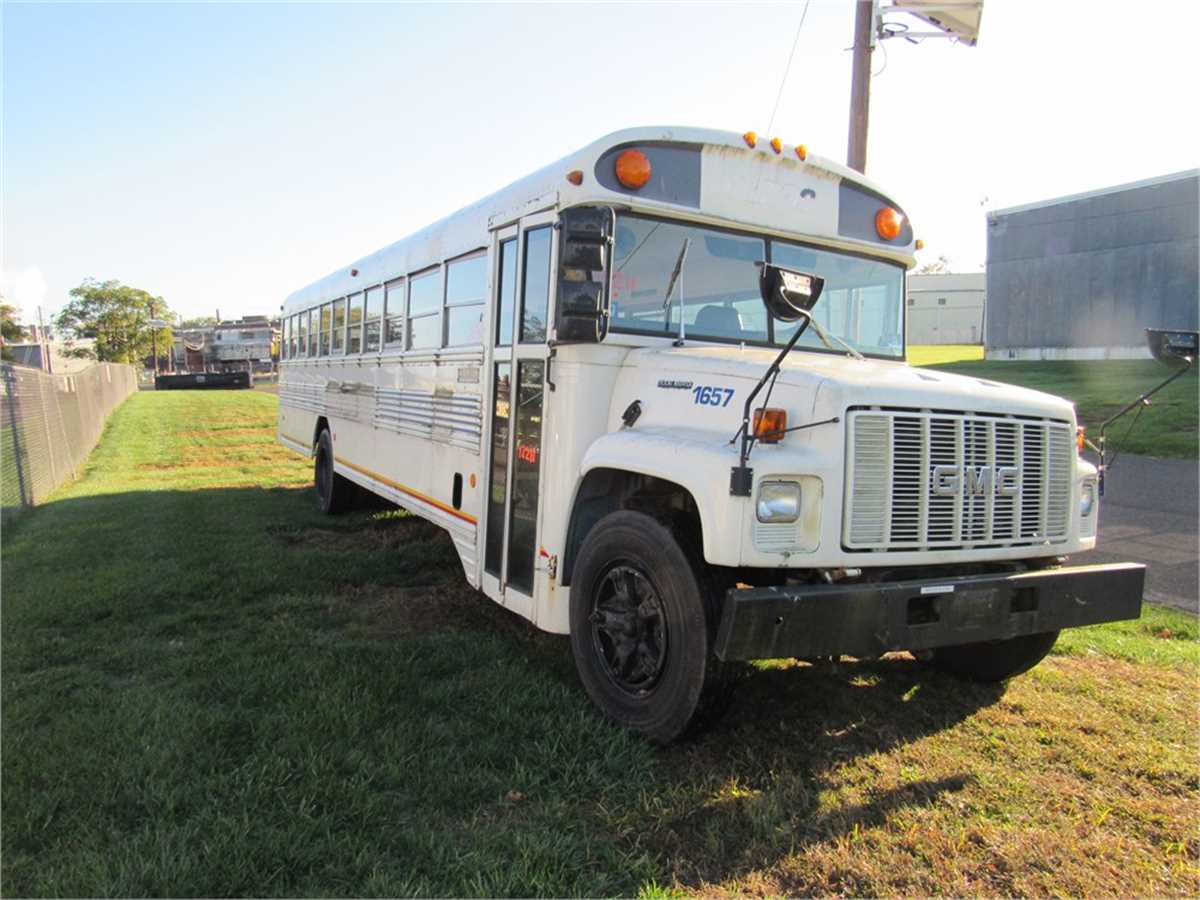 This isa re-listed auction for a 1997 GMC Bluebird Bus with 6.6L, V6 engine and an automatic transmission. The bus starts and runs, presently. Driver rear turn signal cover is missing and the flooring inside needs attention. Buyer is responsible for loading and removing of heavy item.
