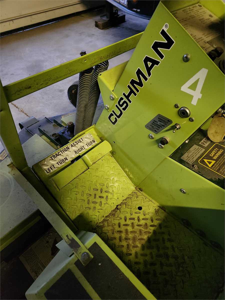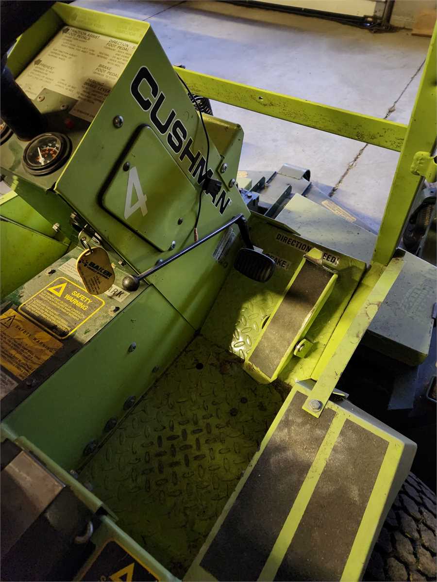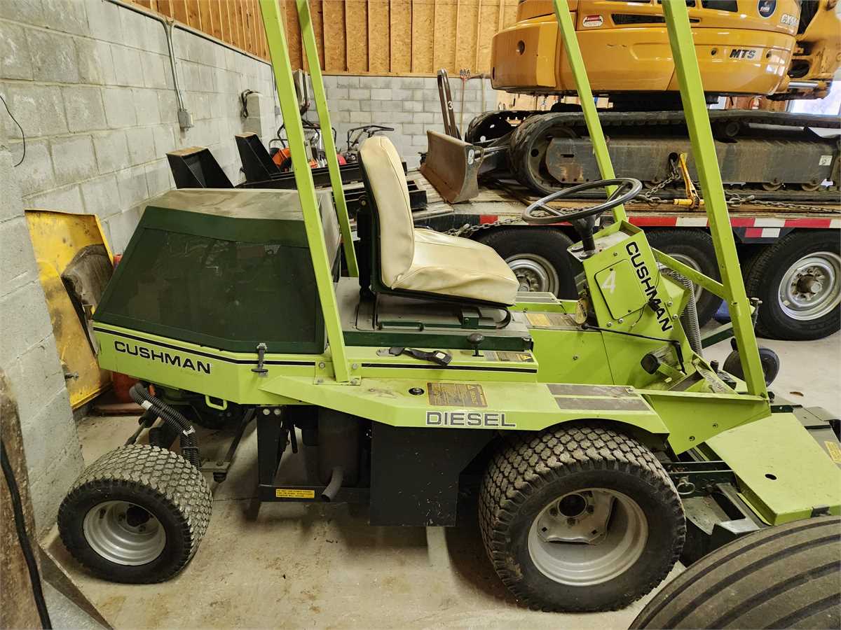 Cushman riding mower, diesel engine, 4-wheel drive. Requires new battery. Sold as is.