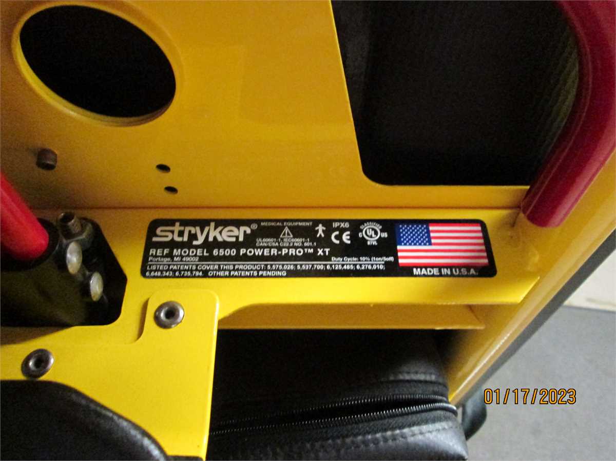 The Stryker 6500 Power-Pro XT Powered Cot uses a battery-powered hydraulic system that raises and lowers the patient with the touch of a button. Foot end-mounted Stryker battery is accessible and easily changed in any situation. Retractable head section allows cot to be shortened in any height position for maximum versatility. It is collapsible for use in emergency vehicles and has an adjustable load height feature to allow the device to be set to different ambulance deck heights for proper body mechanics during loading and unloading.