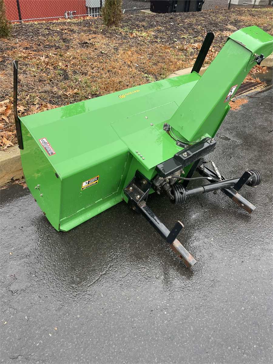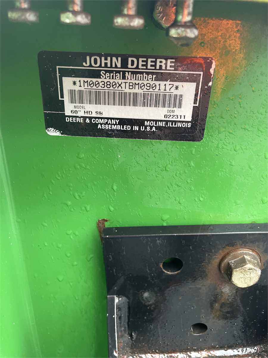 John Deere model 60” HD SB. It is set up for John Deere 1445 mower. Being sold AS IS. The snow blower has a gear box issue that we never dug into.