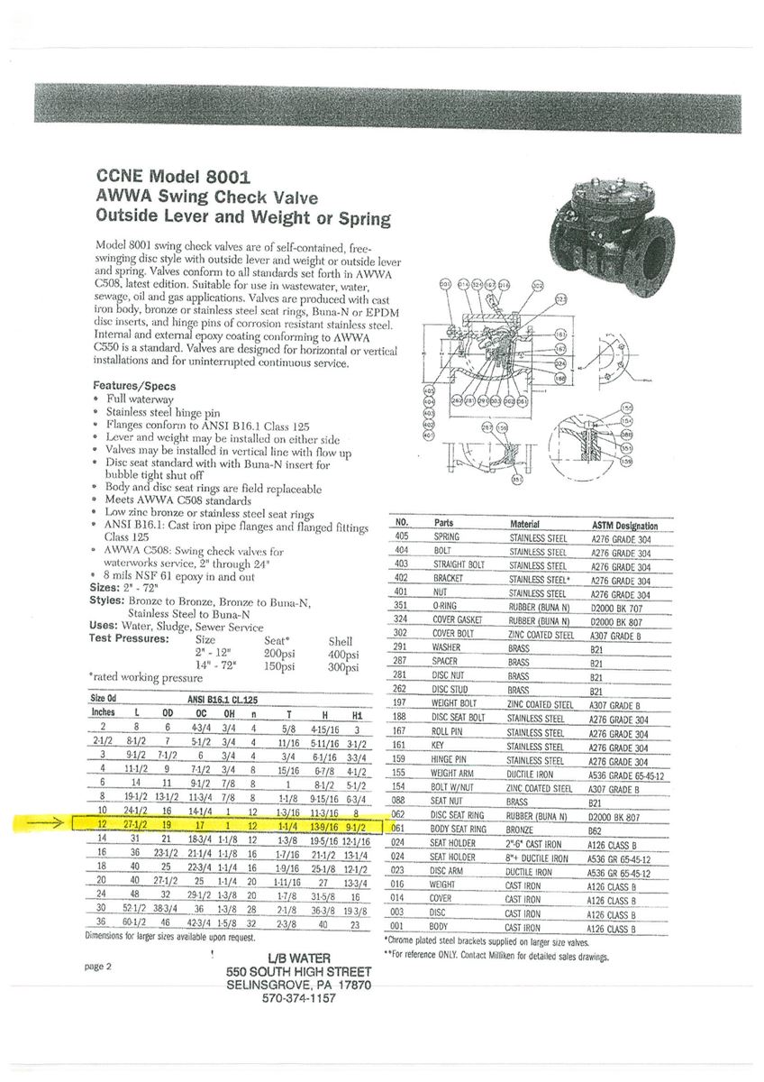 Milliken CCNE Model 8001 AWWA 12" (weighted outside lever)