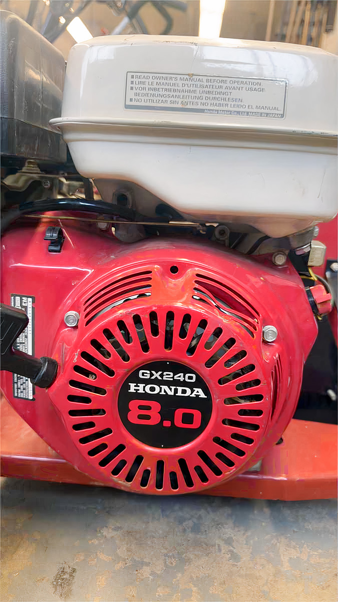 Honda GX240 8 hp motor been sitting for 10 years plus no gas in tank but dent on top of tank. Has rear steering. All tires hold air. Good belts, and almost new edger blade. Not running