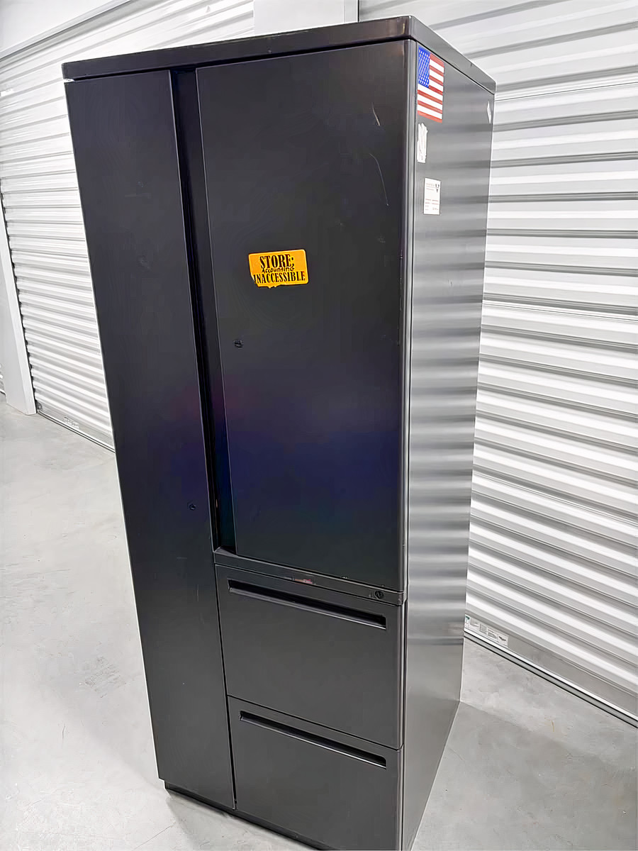 I dont have a photo of the inside and the unit is in a storage facility. If I can get someone to go over there and take another photo i will. What I can tall you is the right side is two file drawers on bottom and shelves in the cabinet on top right.