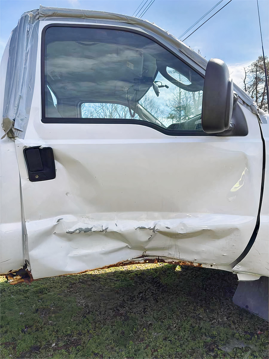2003 F350 Super Duty with a powerful 6.8L V10 Triton engine and 87,991.5 miles. This truck was involved in an accident and has not been used since. It has damage specifically to the passenger's side of the cab. Ideal for those looking for a project or parts.