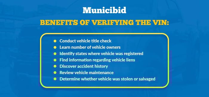 While at the auction or private seller, run the vehicle’s VIN through the National Insurance Crime Bureau (NICB). This free service allows people to determine whether a vehicle has been stolen or listed as salvage by an insurance agency. A vehicle that is listed as salvage is one that has been deemed too expensive to repair. These vehicles can’t be registered, so you could never legally get license plates or insurance for it.