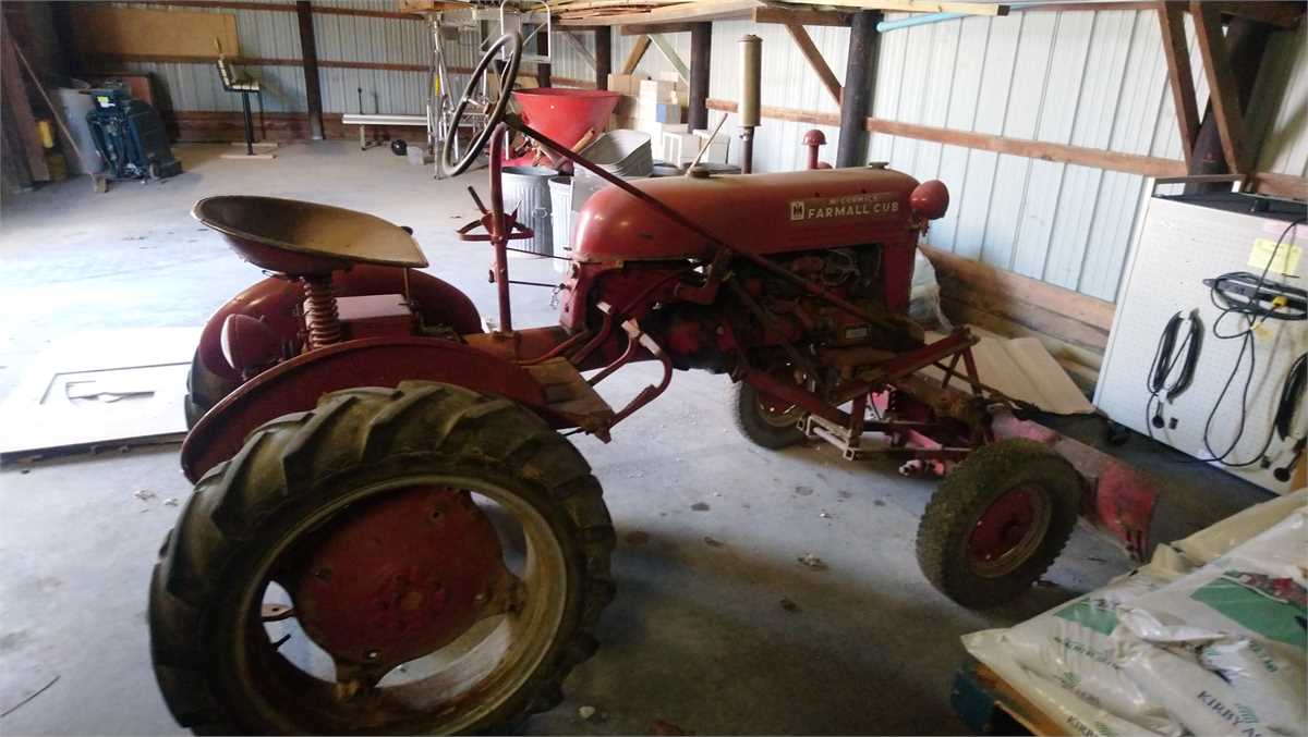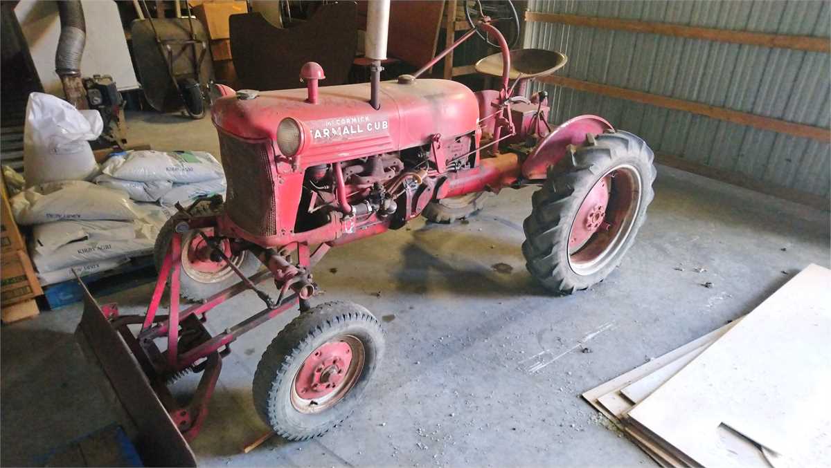 IH farmall cub McCormick tractor with 54" snow blade, does run it is 6 volt system.